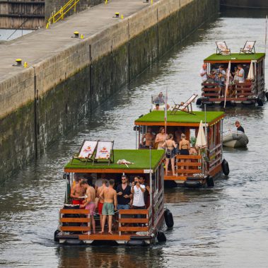 - Das Betreten des Dachs während der Fahrt ist für max. 6 Personen gestattet! Sobald das Boot angeleint oder geankert ist, darf das Dach von allen Gruppenteilnehmern betreten werden!